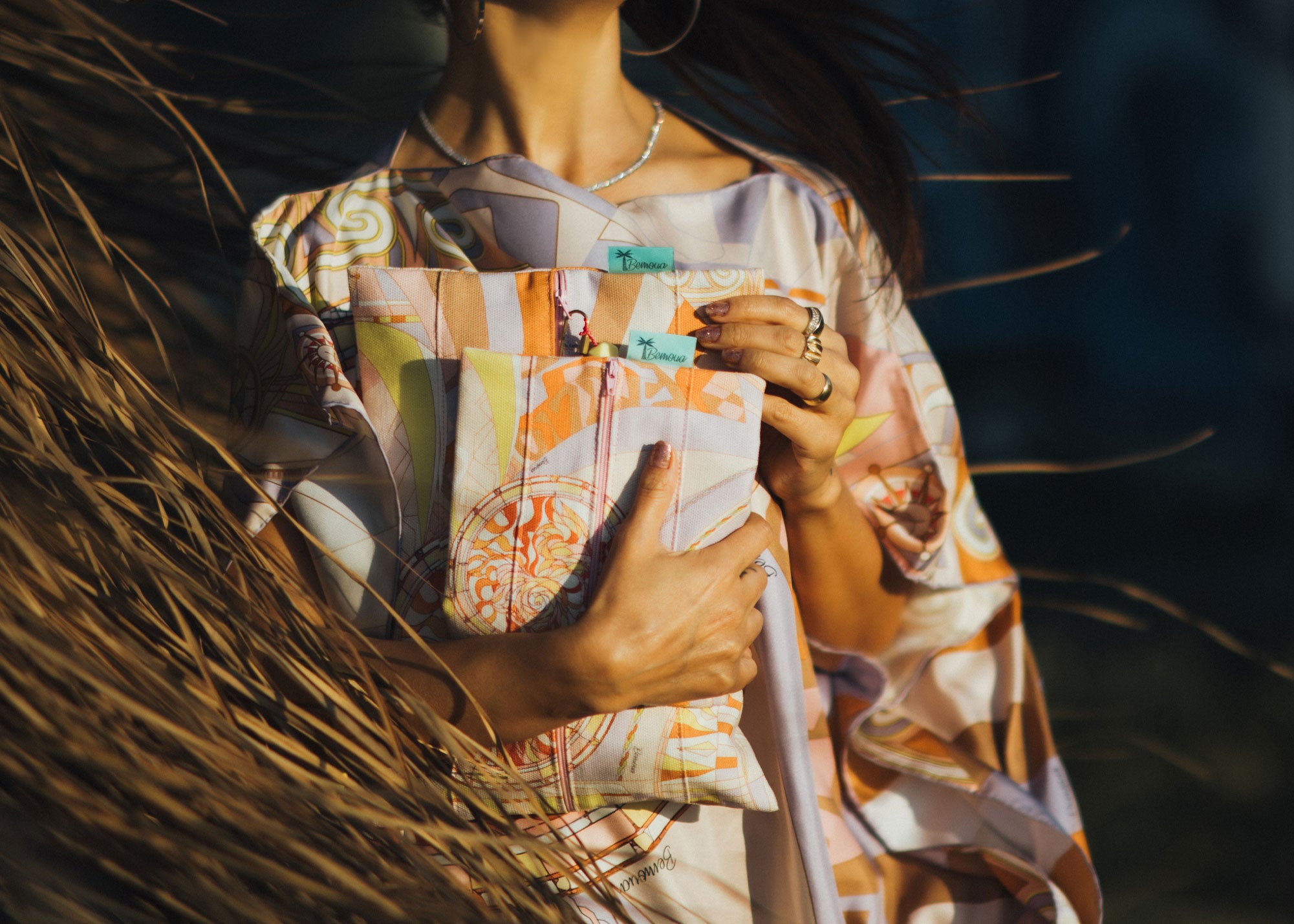 Die neue Taschenkollektion bietet sechs einzigartige Statment-Designs für einen atemberaubenden Look. Perfektes MIX & MATCH zu lässig-eleganten Seidenkleidern.